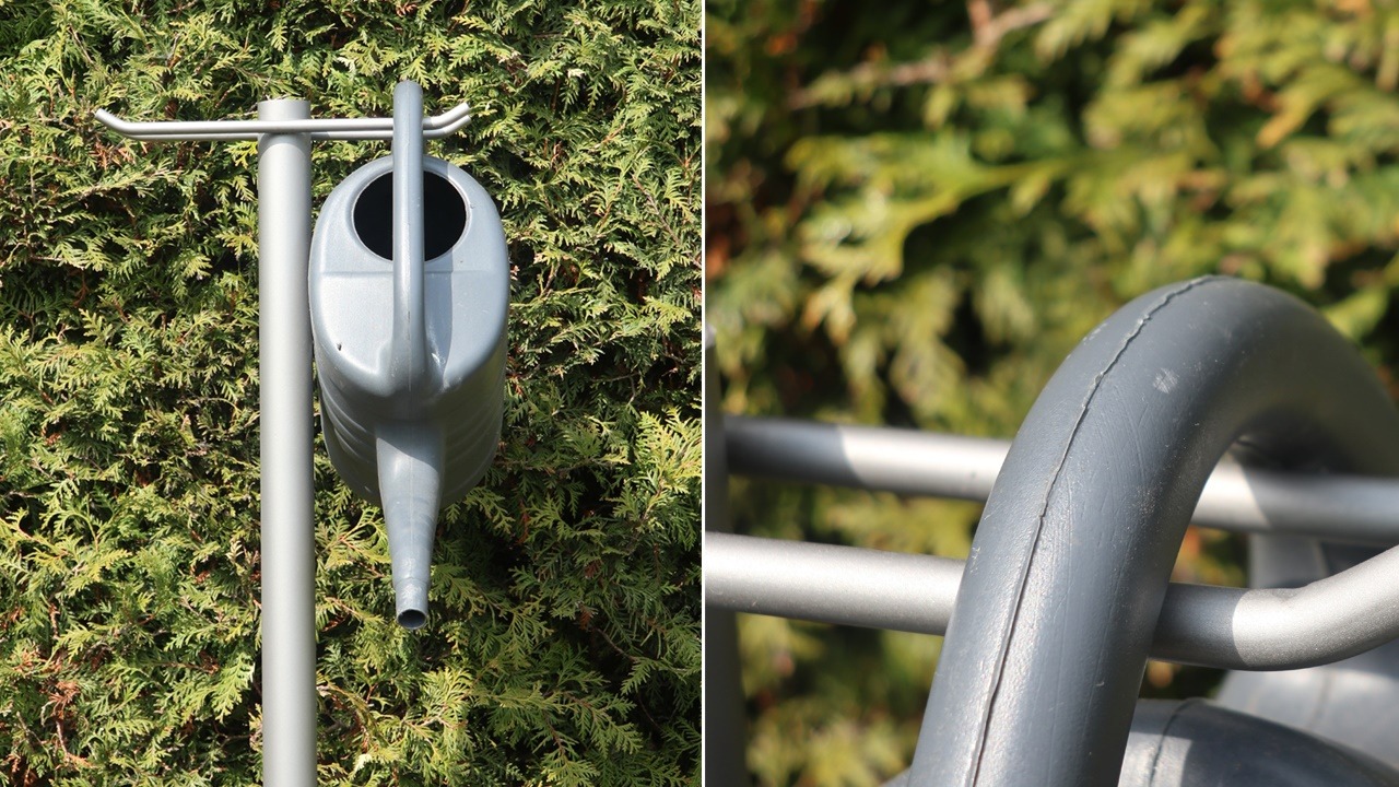 Modell Hyby kan fås i blästrat rostfritt stål eller rostfritt stål, lackad i standardfärgerna grön och svart. Välj mellan plats för 2 eller 4 vattenkannor.