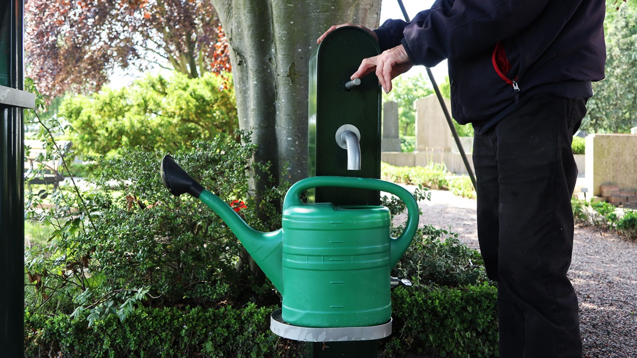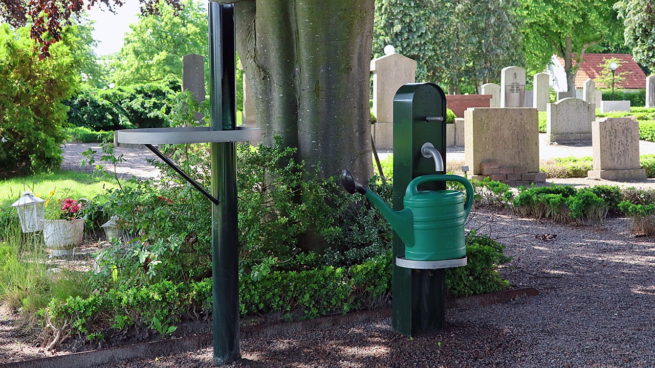 Självstängande vattenpost med ergonomisk och hållbar lösning för kyrkogårdar