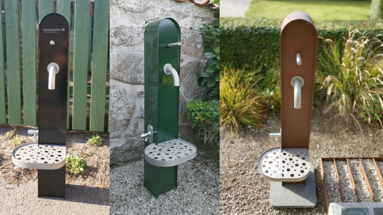 Bornholm är konstruerad i kraftigt rostfritt stål och har en stabil plattform 34 cm ovan mark, perfekt för att placera vattenkannan. Det betyder att besökare slipper tunga lyft från marknivå – en enkel men avgörande detalj.